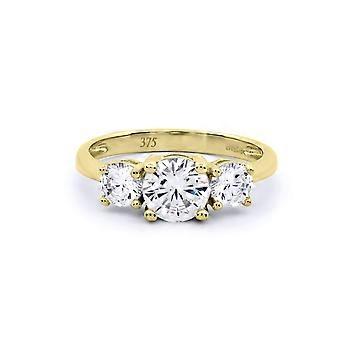 Jewelco London Ladies Solid 9ct Gold White Round Brilliant Cubic Zirconia 3 Stone Trilogy Engagement Ring 6.5mm 1.70cts