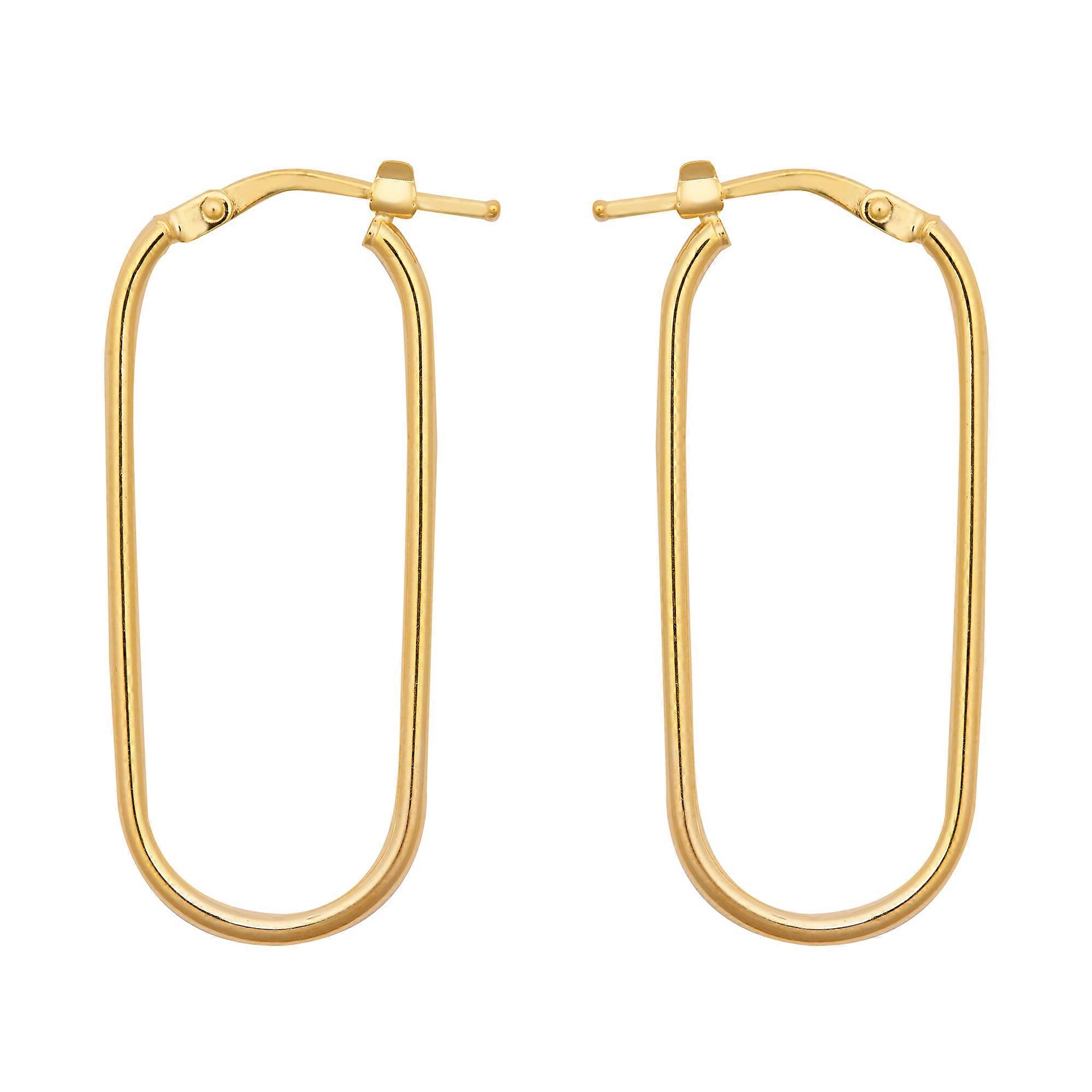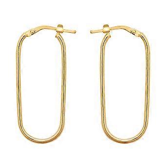 Jewelco London Ladies 9ct Yellow Gold Paperclip Pill Oval Hoop 1mm Drop Earrings, 35mm