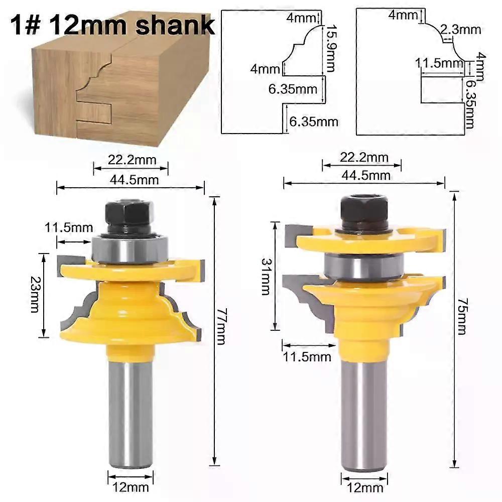 JGZUI 2pcs 12mm 1/2 Shank Shaker Rail & Stile Router Bits Set Carbide Door Knife Woodworking Tenon Cutter Tools For Wood