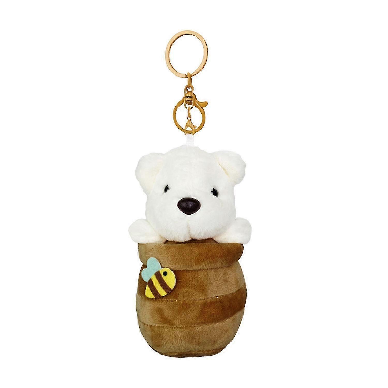 JiaWei Plush Honeypot Bear Keychain with Hanging Buckle Stuffed Animal Plushie Doll Key Ring Holder Handbag Hs7