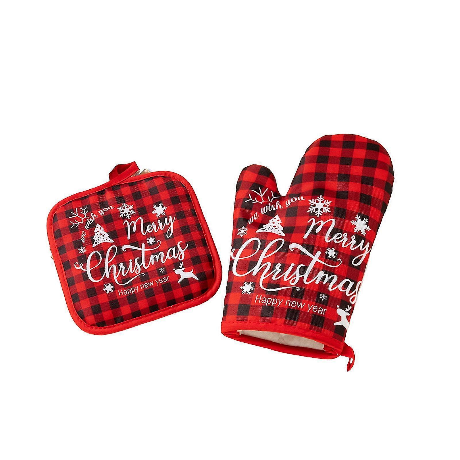 JiaWei 1 Set Baking Glove Cartoon Pattern Christmas Glove Heat-resistant Oven Glove with Mat oDc