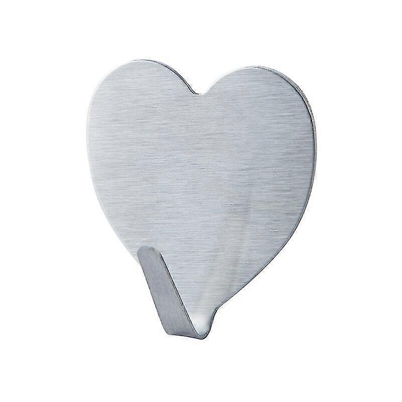 JiaWei 10 Pack Heart Shape Decorative Wall Hooks, Stainless Steel Strong Adhesive Wall Hooks for Home Kitchen Bathroom Office (Silver) zr1