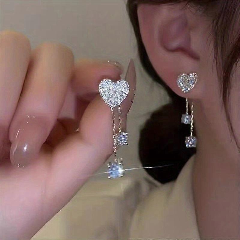 JUEGE* Personality Asymmetric Full Zircon Heart Shaped Tassel Earrings For Women Girls