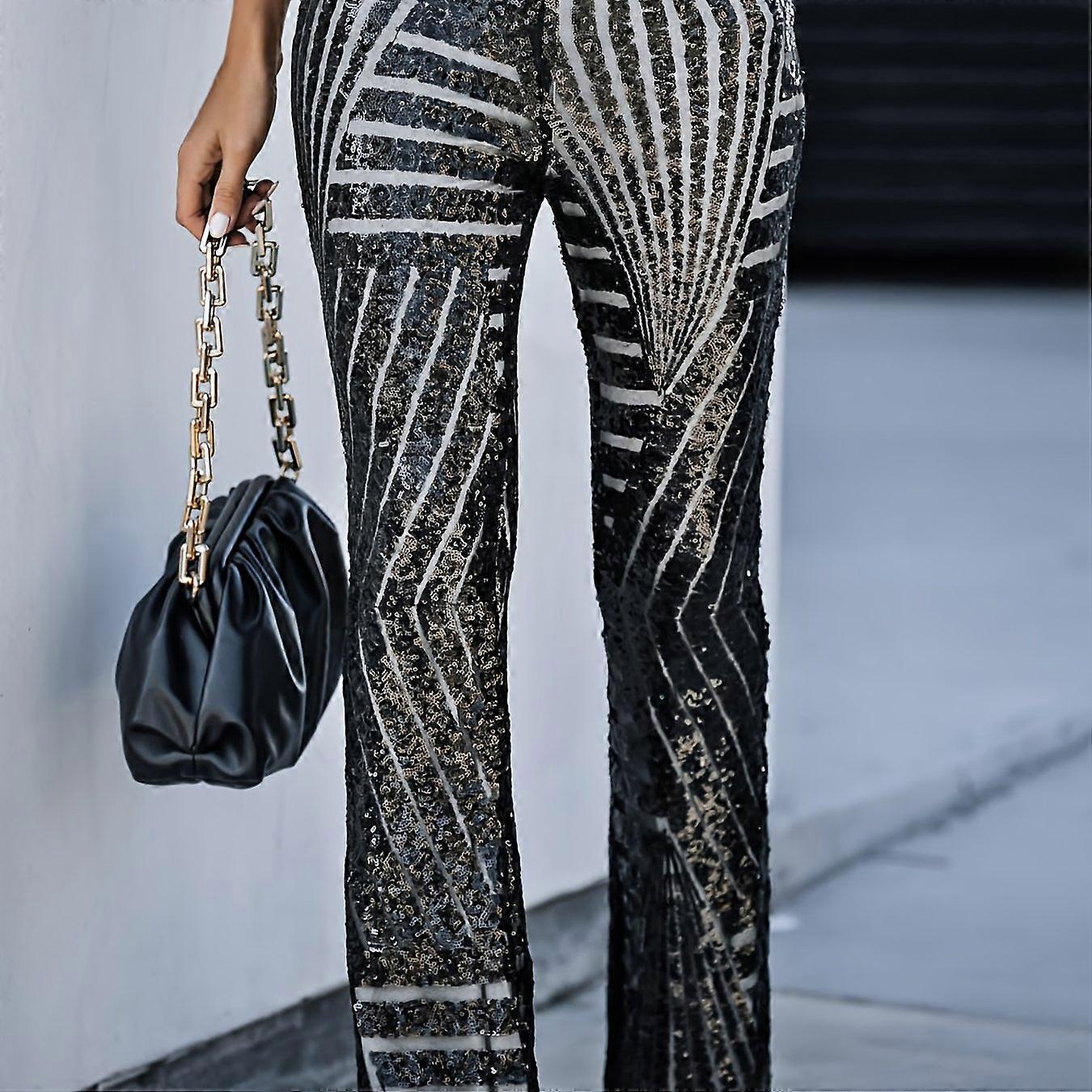 JUNGE Glitter Sequin Flare Leggings, Casual High Waist Fashion Skinny Wide Leg Fall Pants, Women's Clothing SZJG240306