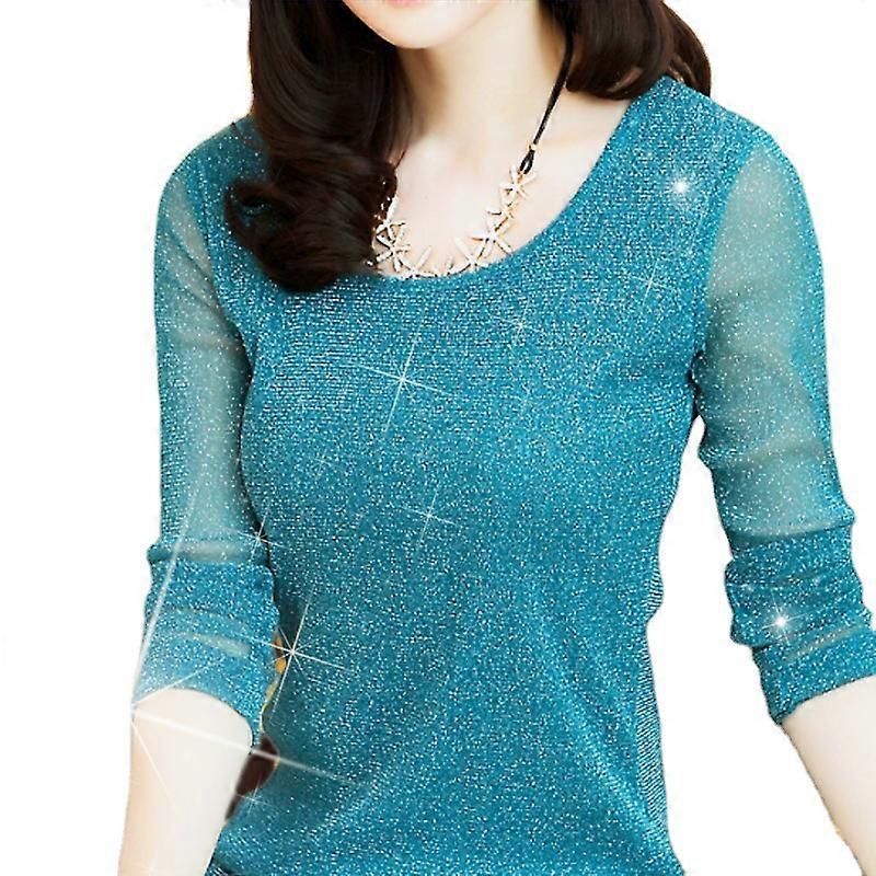 JWL- Spring Summer T-Shirt Women Long Sleeved Slim Fit Thin Messh Yarn Office Lady Top Lace Pullover Female Elegant T-Shirts
