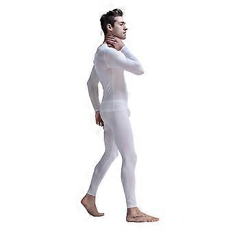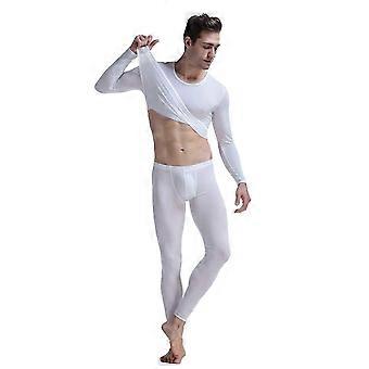 JWL- Long Johns Men Thermal Underwear Set Ice Silk Long Sleeve Keep Warm Slim Ultra Thin Undershirt Pants Tops Bottoms