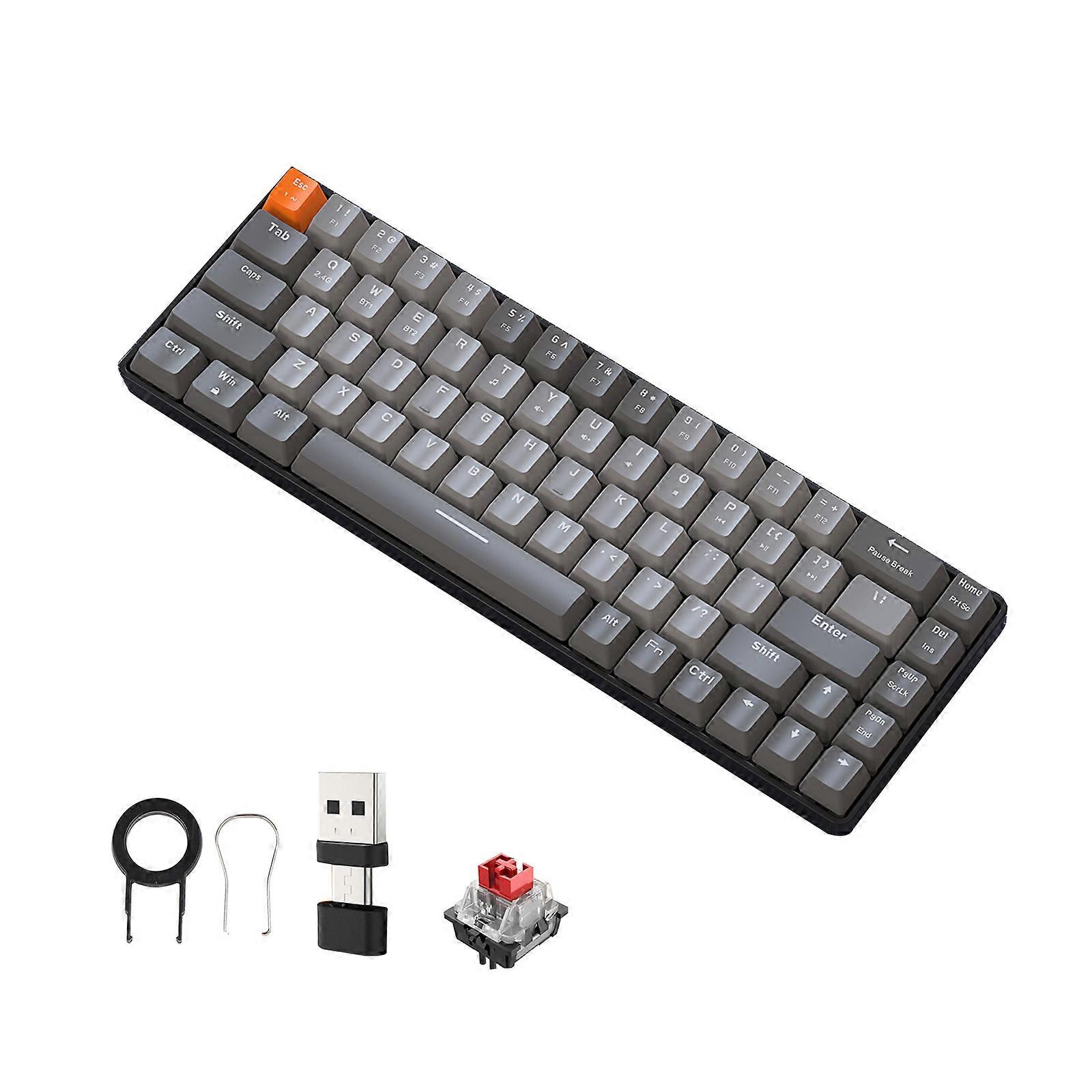 Features: 68 Keys arrangement dual-mode 2.4G+BT5.0 Wireless Mechanical Keyboard USB+Type-C Dual purpose receiver, can connect Mobile phone, computer and paid tablets. Mechanical switch- ;Support hot swap,DIY your switch . Ergonomic design, stepped button layout, adapt to human tapping action 68-Key lightweight layout convenient and compact . Specifications: Product Name: 68-key dual mode2.4G+BT5.0 Wireless Mechanical Keyboard Size:approx 309x100x38mm/12.16x3.94x1.5in Type: Mechanical keyboard Shaft Body: Shimmer Red Switch/ Milk Blue Switch/ Milk Red Switch/Business Gray Switch/Business Red Switch Number of keys: 68 (keys) Connection with computer: USB+Type-C Dual purpose receiver Whether to support hot swap: full key hot plug mechanical shaft Key conflict: 19 key has no impact Whether there are multimedia function keys: Yes Waterproof function: support waterproof Key technology: mechanical shaft Whether to support ergonomics: support Transmission distance: approx10m/32.8ft Bluetooth version: Bluetooth-compatible 5.0 supports Windows 8 or higher Wireless connection: USB2.4G wirelessXP/Vista-/Win7/WIN8/WIN10 Package Includes: 1PC 2.4G+BT5.0 Wireless Mechanical Keyboard 1PC USB+Type-C Dual purpose Receiver 1PC Instruction note: The packing list does not include batteries. You need to prepare two No. 7 batteries for use. Please allow 0-1cm error due to manual measurement. pls make sure you do not mind before you bid. Due to the difference between different monitors, the picture may not reflect the actual color of the item. Thank you!