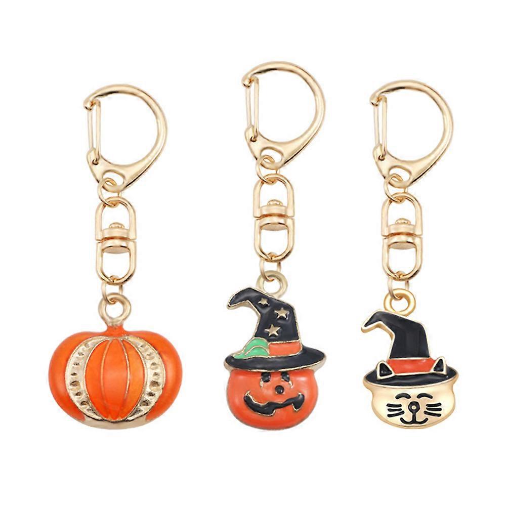 Kawaii Keychain Pumpkin Hat Cat Shape Assorted Color Halloween Decoration 6.5x1.5x1cm 3Pcs
