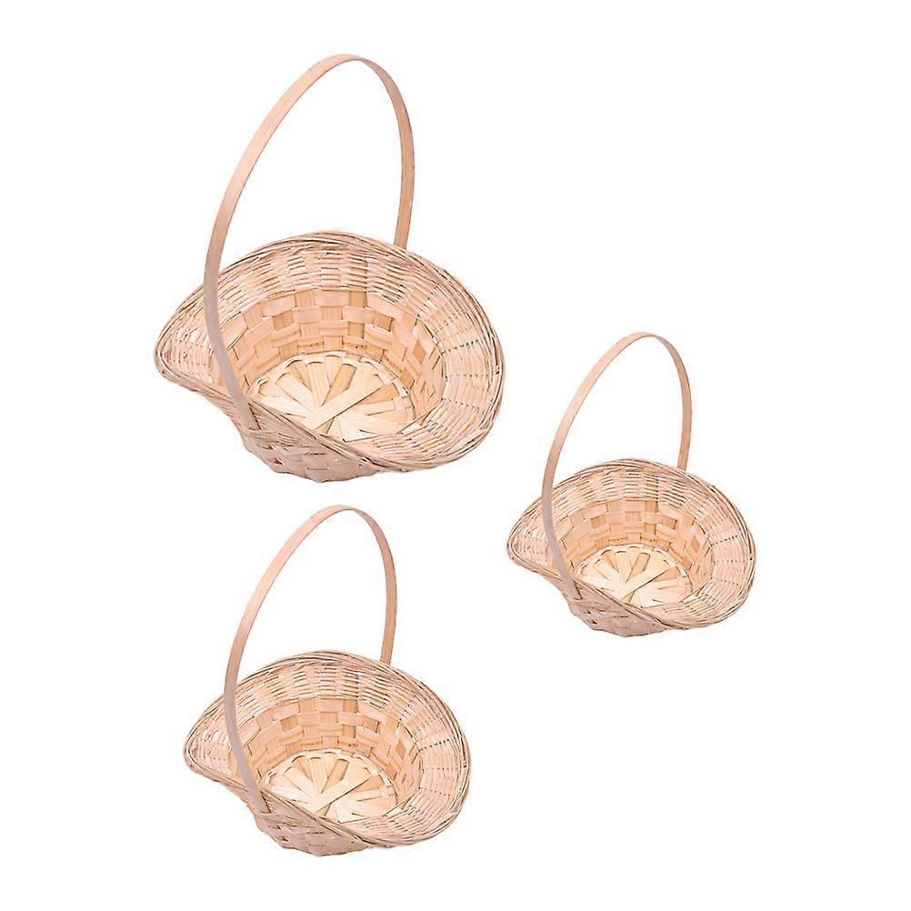 Khaki Bamboo Handle Basket Multi-Function Egg Basket 3Pcs Household Fruit Baskets