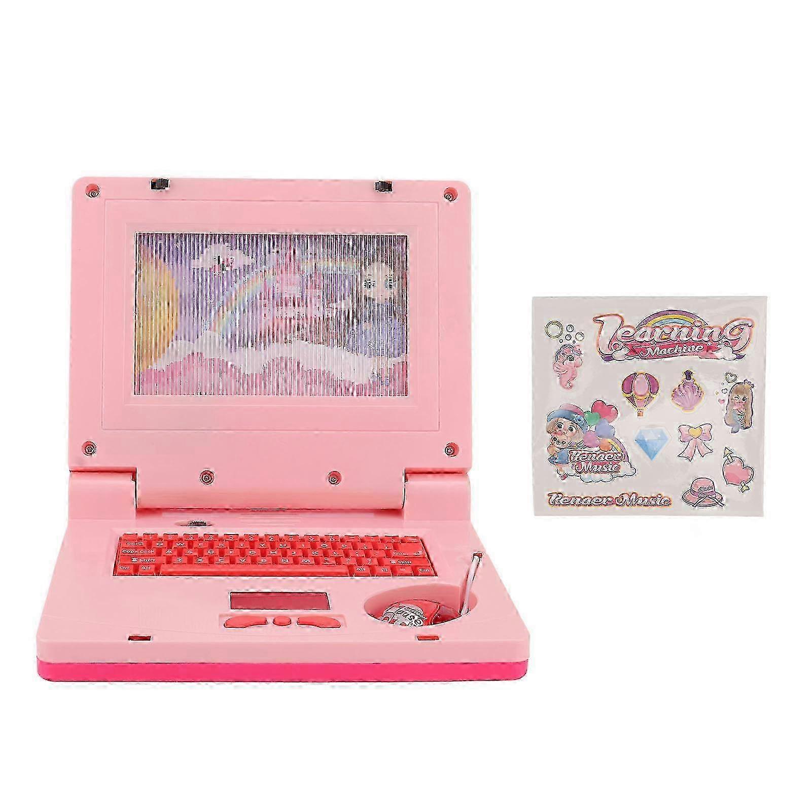 Kids Learning Laptop Educational Led Music Electronic Cognitive Development Simulation Computer Toy Pink Non Retractable Mouse