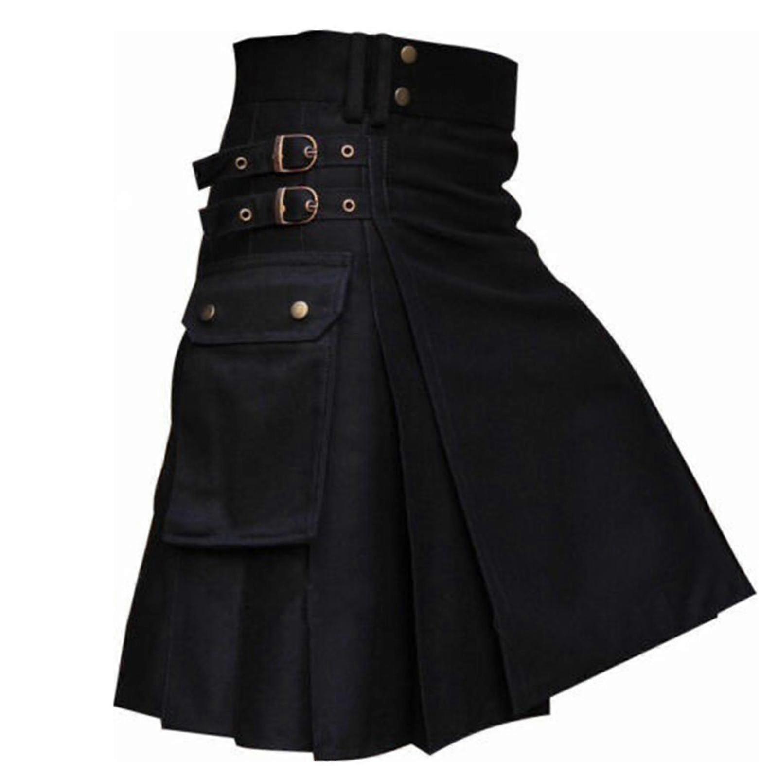 Kilts for Men's Skirt Pants, 2023 Newly Scottish Skirts Modern Jeans Tartan Hybrid Kilt Traditional Pleated Kilt