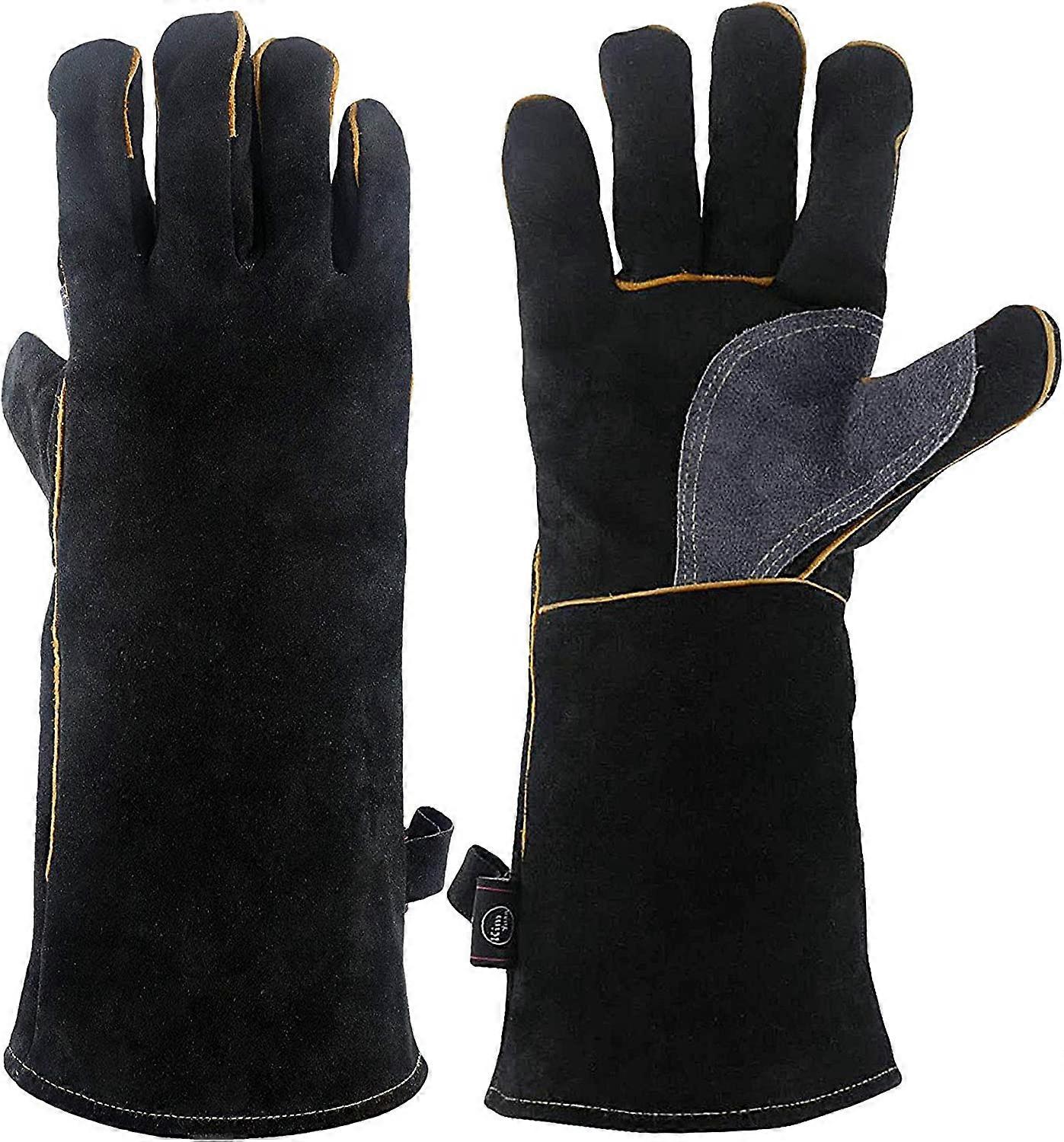 KIM YUAN Extreme Heat & Fire Resistant Gloves Leather with Kevlar Stitching Perfect for Fireplace Stove Oven Grill Welding BBQ Mig Pot Holder