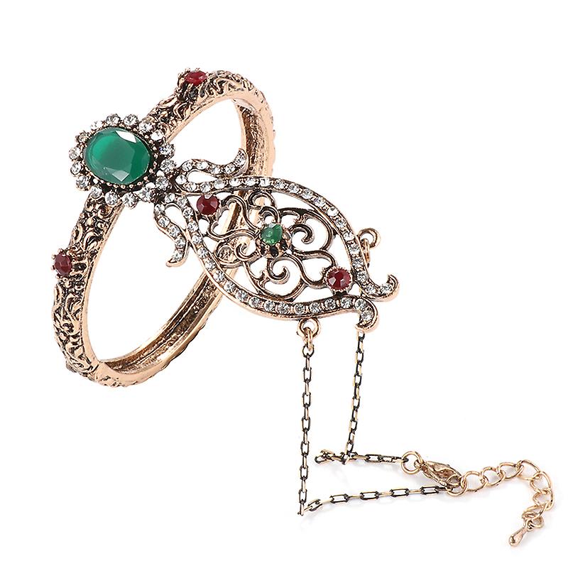 Kinel Charm Ethnic Cuff Bangle For Women Antique Gold Crystal Flower Indian Bracelet Link Finger Arabia Dance Vintage Jewelry