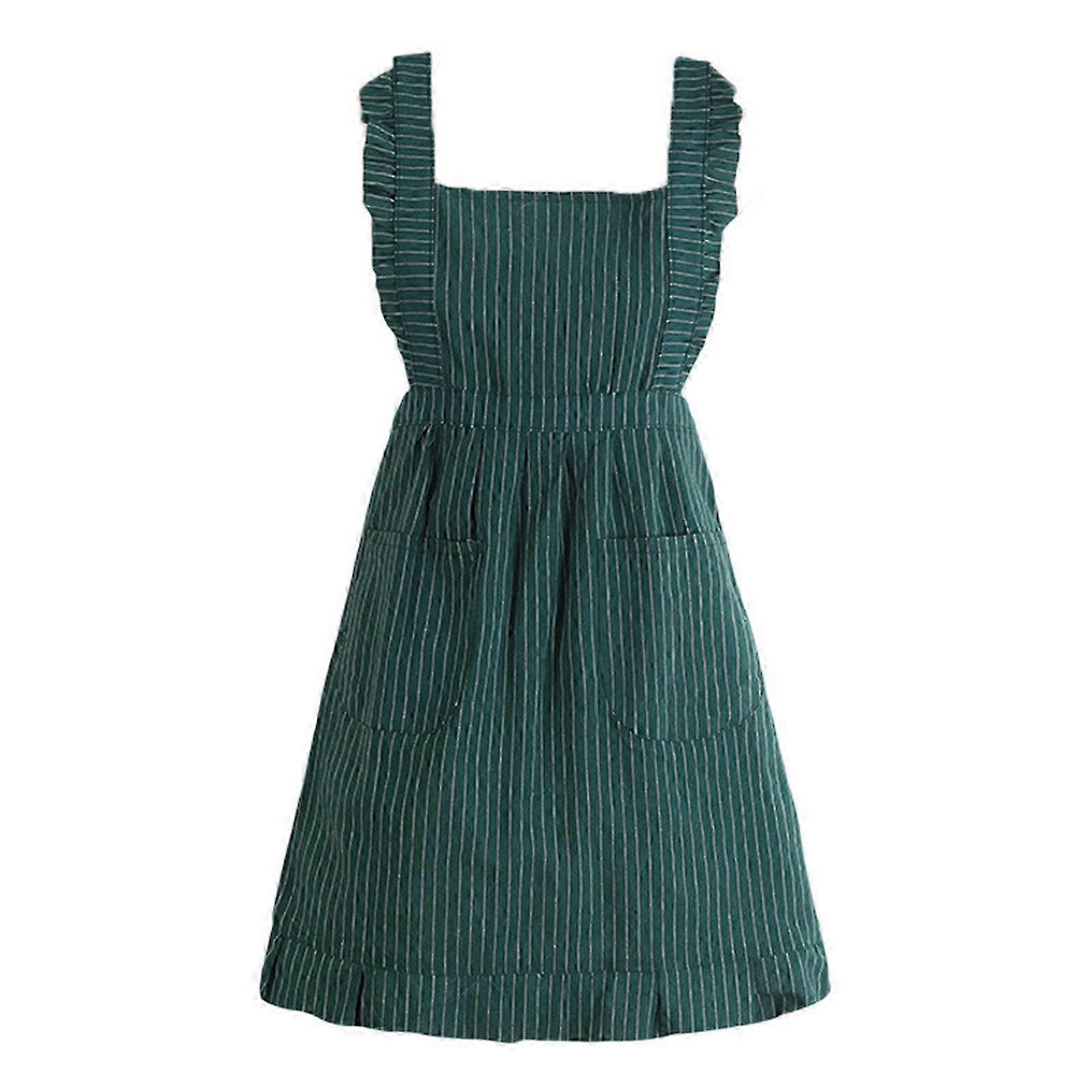 Kitchen Apron Soft Double Pocket Oil-proof Adjustable A-line Green