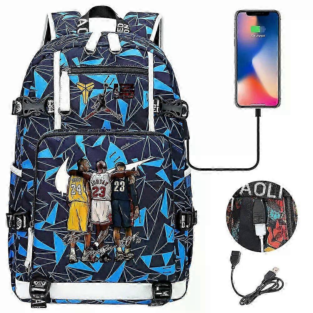 Kobe Bryant Michael Jordan And Lebron James Printed Pattern Backpack Travel Bag Student School Bag Computer Bag dark blue 26s
