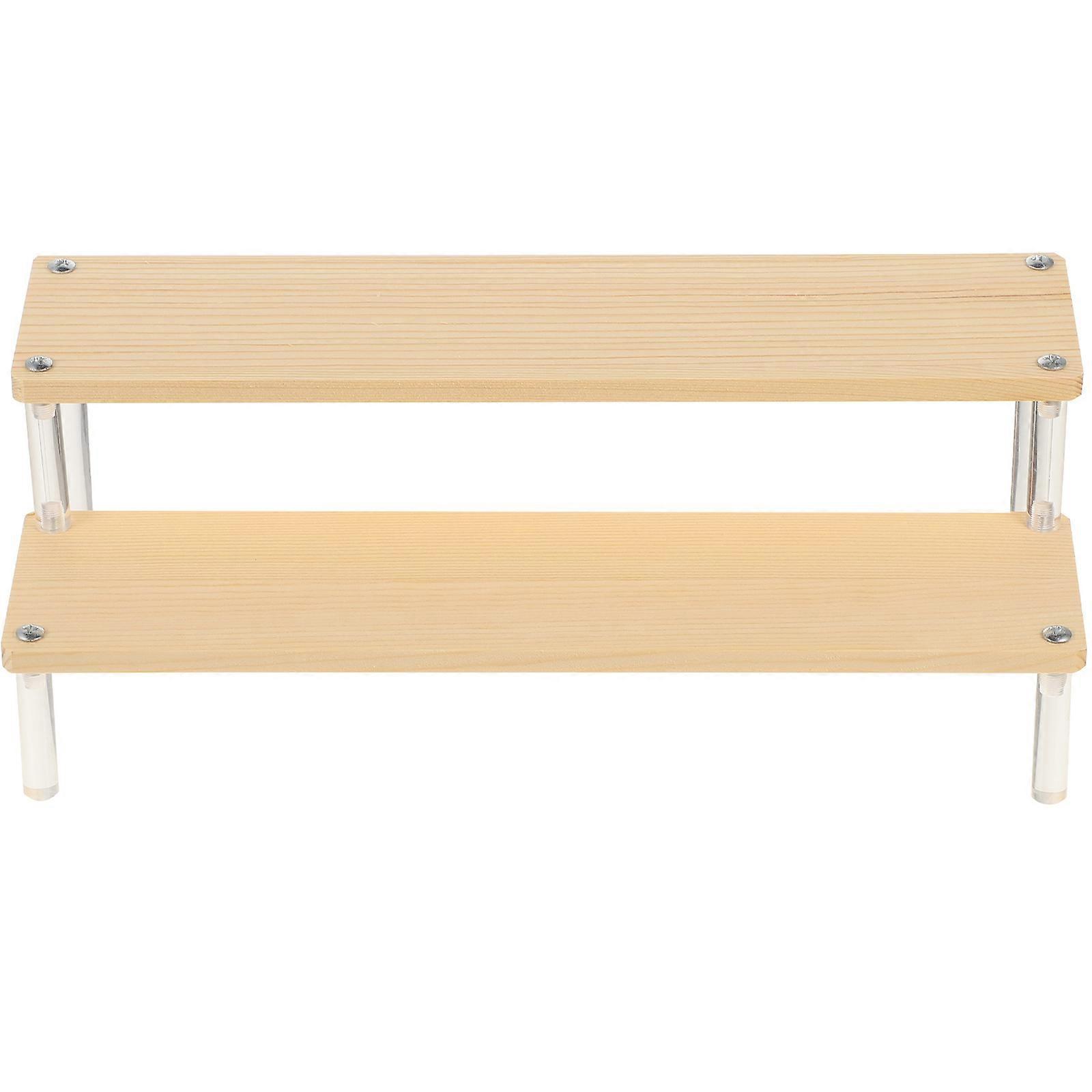 Ladder Shelf 4Pcs Double Layer Organizer Rack For Displaying Toy Figurines And Storing Cupcakes In Khaki Color With Space Saving Feature