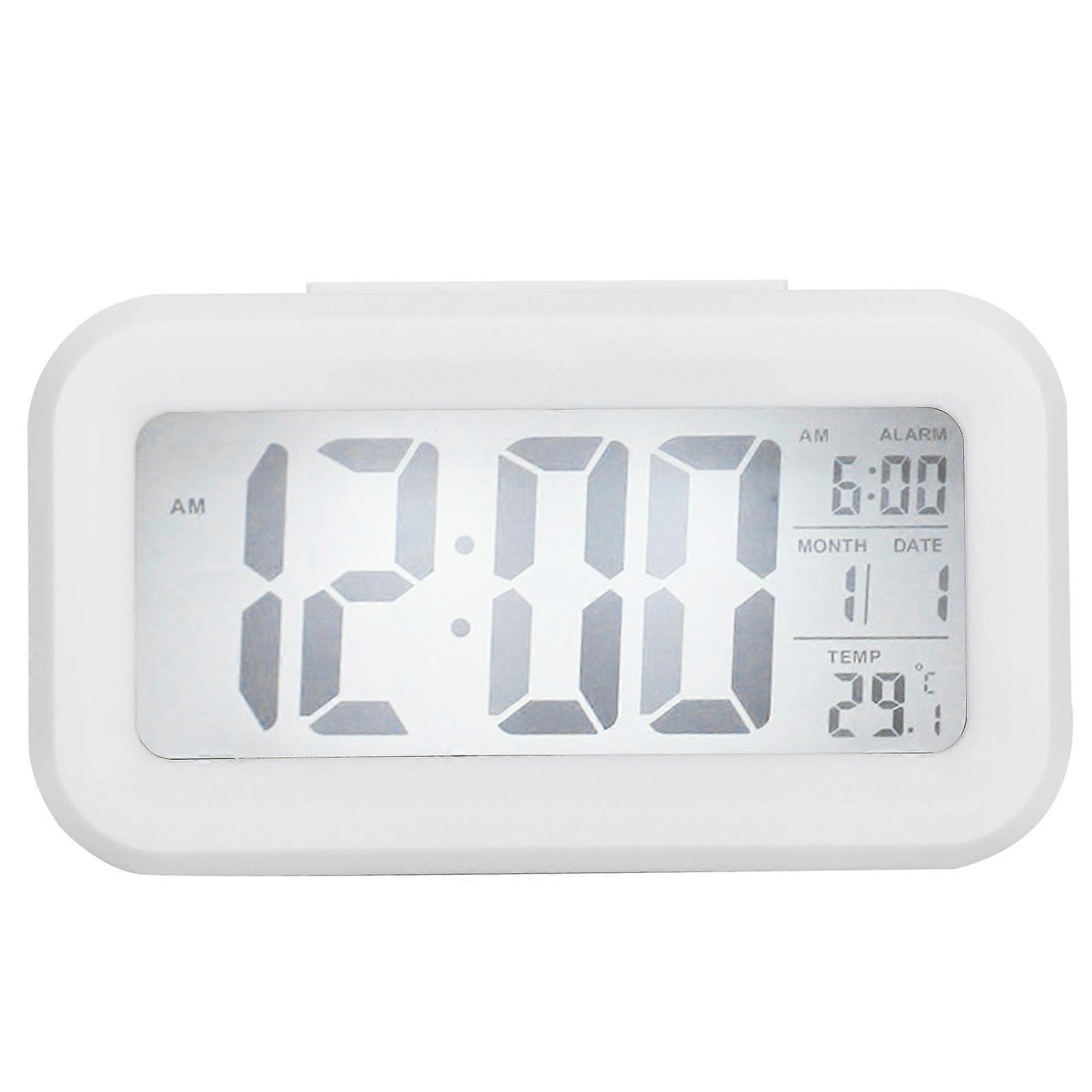 Large-screen LCD electronic clock, mute function, intelligent time and temperature display, alarm clock GHY-501, white