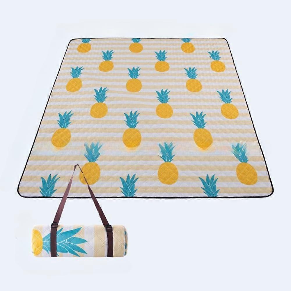 Large Waterproof Picnic Blanket 200x200 with Cotton Padding for Camping, Machine Washable Pineapple Pattern