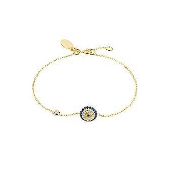 Latelita Evil Eye Bracelet Gold for Women, Sterling Silver with 22ct Gold Dipped, Adjustable 14.5-17cm Length, Multifaceted Blue and White Zircons