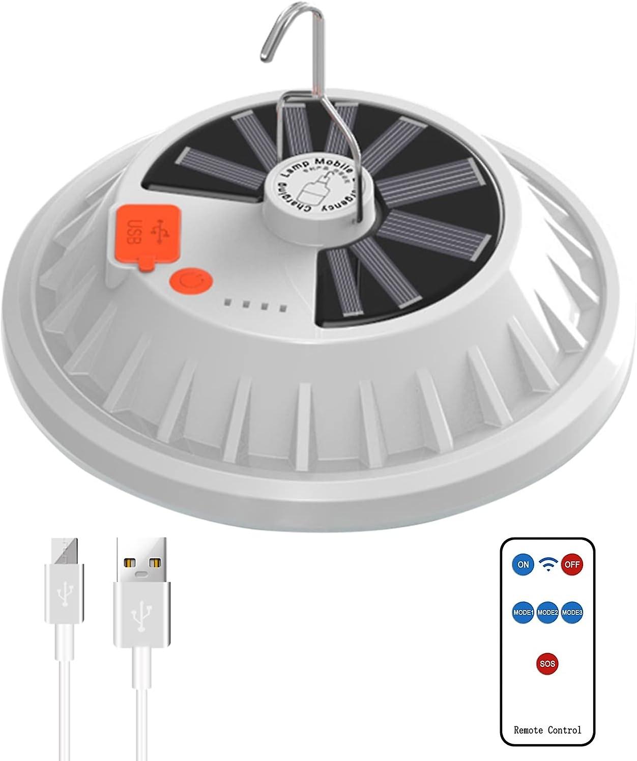 LED Solar Camping Lantern Portable Waterproof Solar USB Rechargeable with Remote Control Power Bank