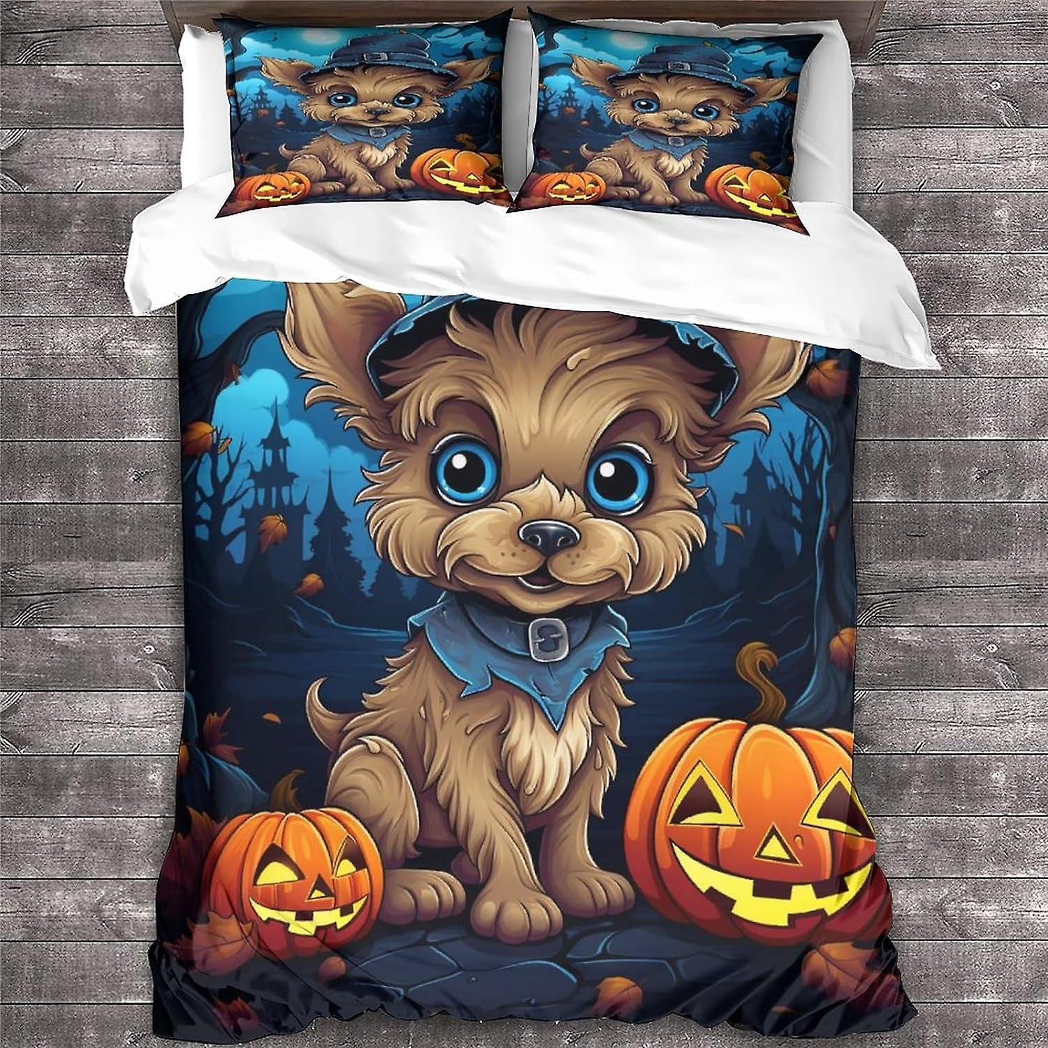 LikeEj Dog 3D Halloween Effect for Childrens And Adults Printed Duvet Cover Set with Pillow Cases,Microfiber Animal Quilt Bedding Set King