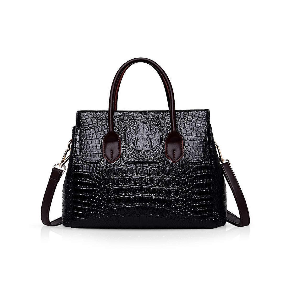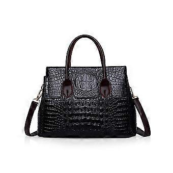 LINJOU Crocodile top handle bags luxurious leather fashion handbags PU leather (Black)