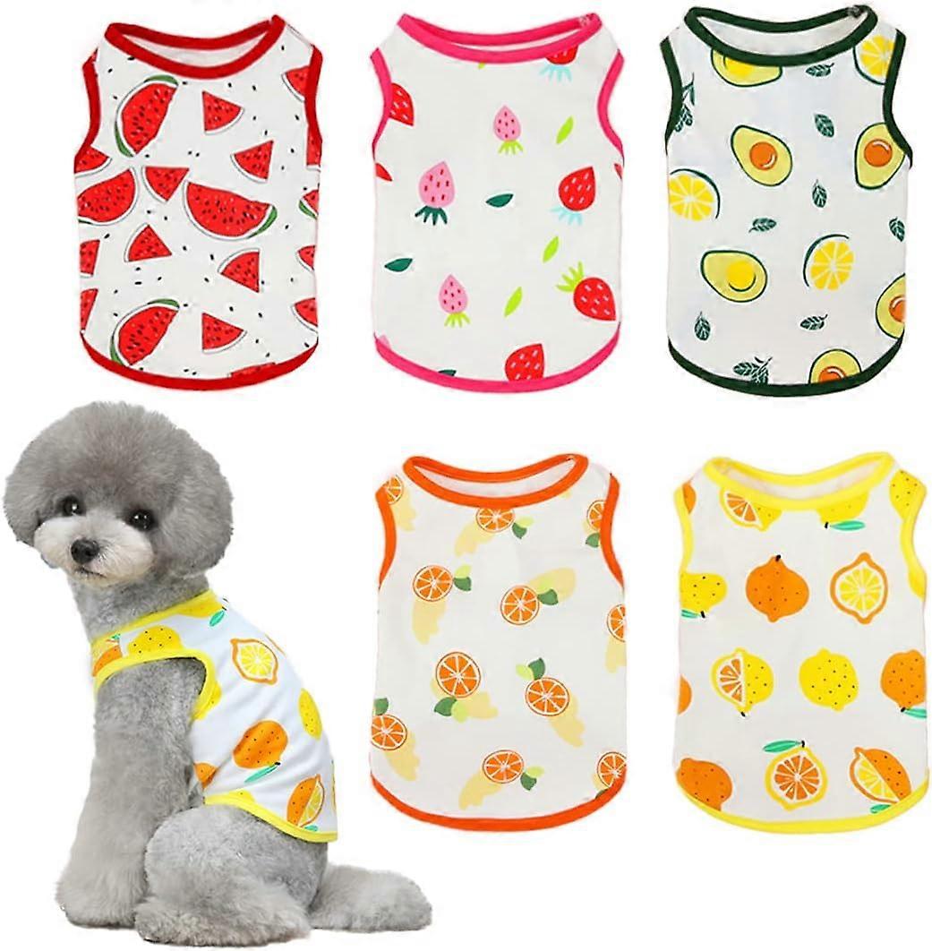 LINJOU 5 Pieces Pet Shirt Fruit Cute Breathable Puppy Summer SoftVest for Small Dog and Cat, Medium