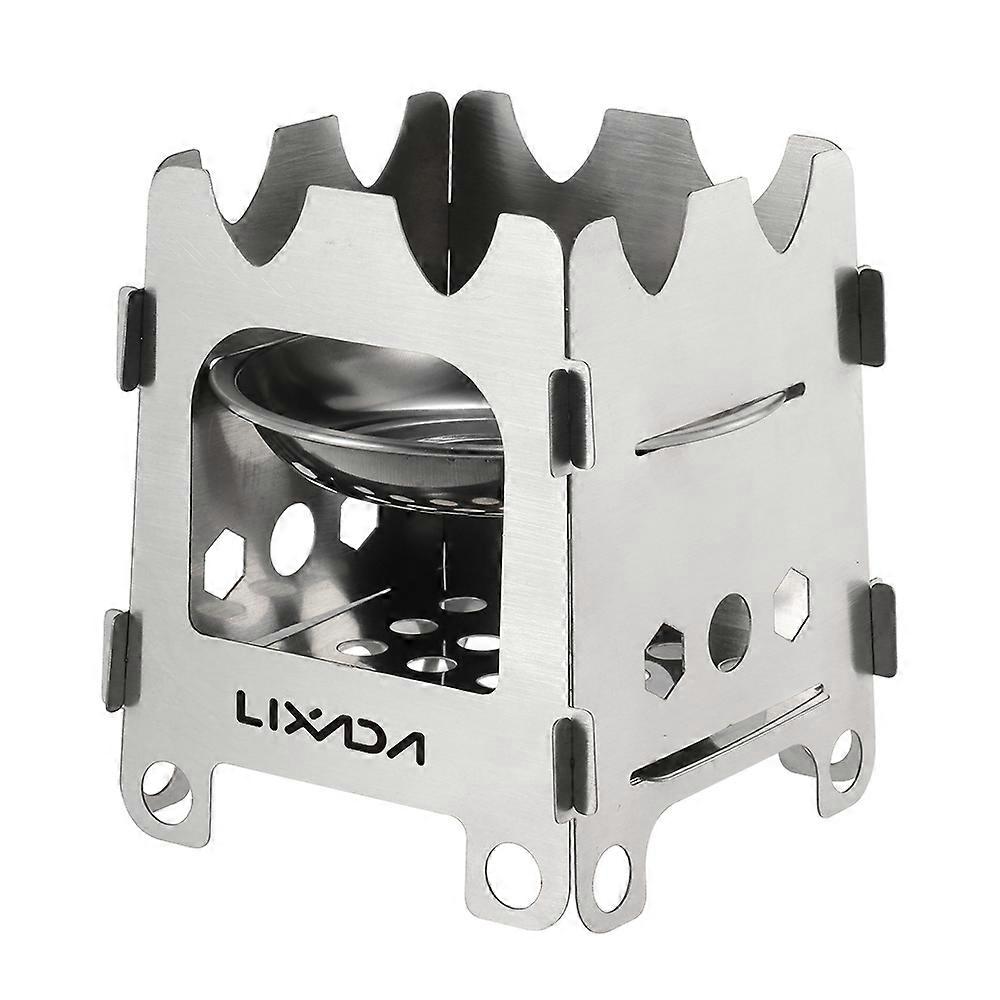 Lixada Outdoor Camping Stove Portable Ultralight Folding Stainless Steel Wood Stove Pocket Alcohol Stove with Alcohol Tray Camping Fishing Hiking Back