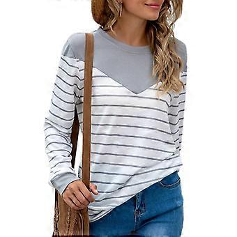 Loose Sweatshirt Round Neck Striped Patchwork Breathable Gray S