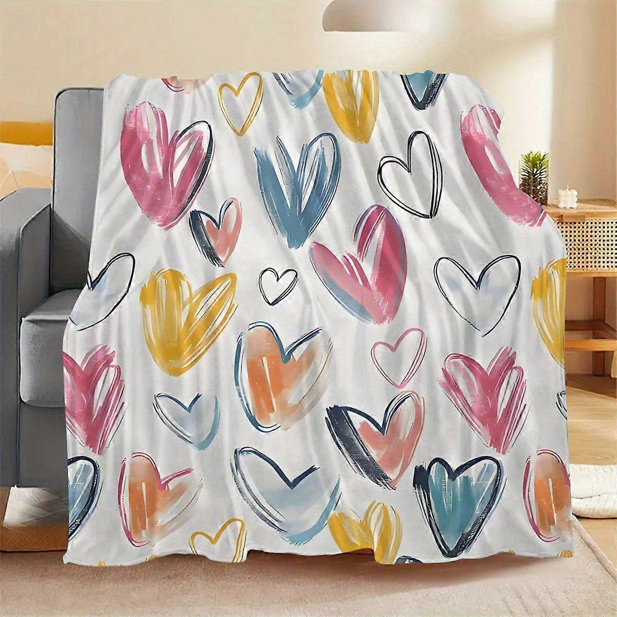 Luxury Modern Colored Heart Pattern Flannel Blanket - Suitable for All Seasons, Soft Polyester, Machine Washable with Zi-ojhgf110