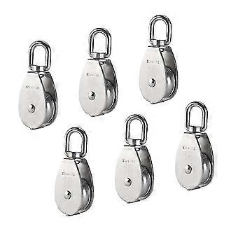 M15 304 Stainless Steel Single Pulley, 15mm Single Pulley Block Roller, Crane Swivel Hook Smooth Wire Rope Cable Loading 77lbs/35kg (6 Pieces)-XinHan