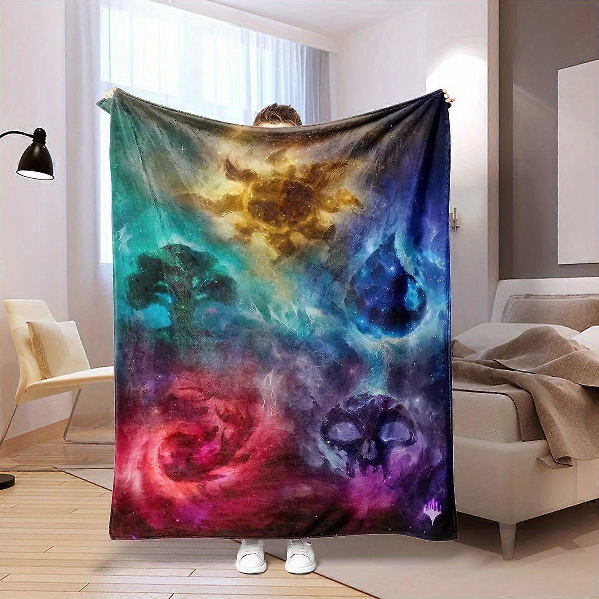 Magic Attribute Retro Cosmic Print Polyester Flannel Blanket - 200-250gsm Anti-Stain All-Season Multi-Use Throw for Bed,-poiuy294