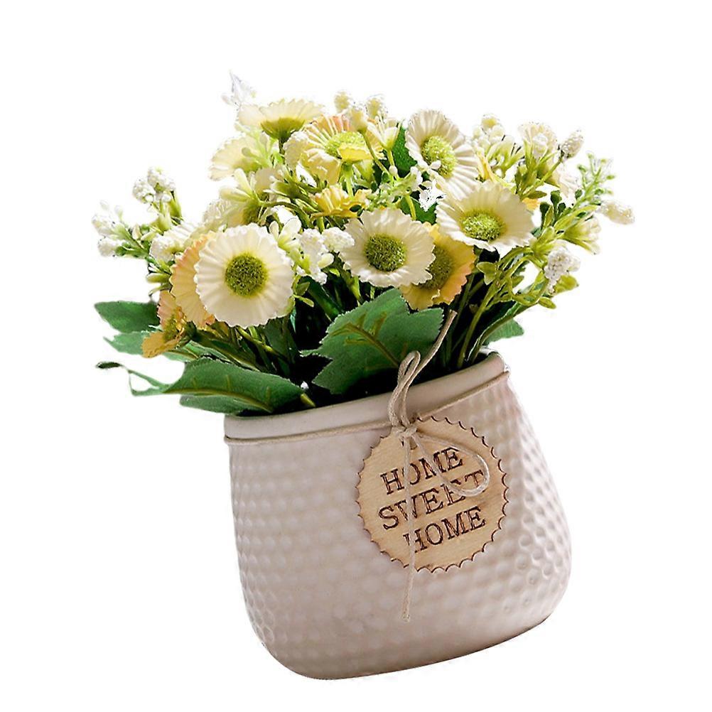 Masteelf 1PC Vivid Ceramic Potted Daisy Plant Simulated Bonsai Pot