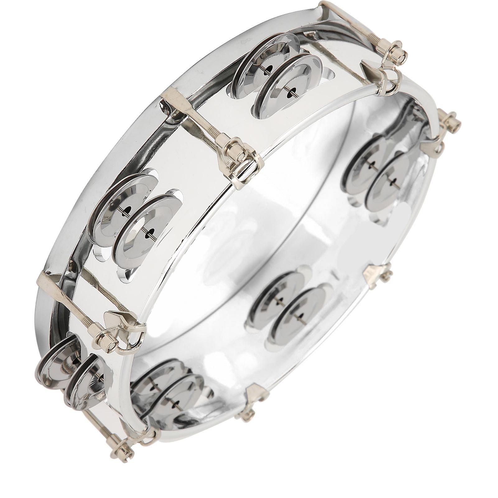 MBAT Tambourine Adjustable Tone Double Row Jingle Bells Handheld Drum Percussion Instrument 8inTransparent