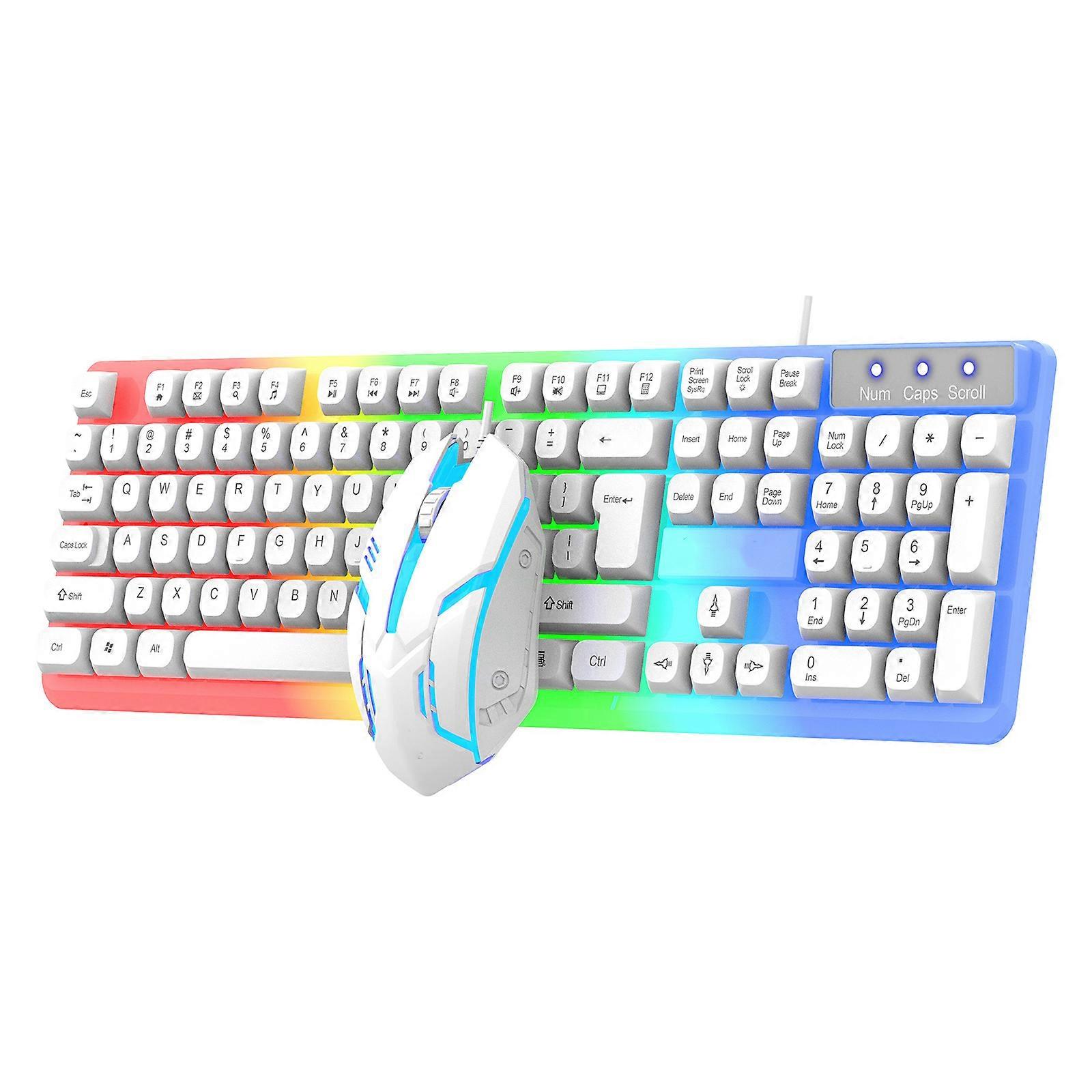 Mechanical Gaming Keyboard and Mouse 104 Keys LED Backlit Keyboard Ergonomic Gaming Mouse Combo Corded Keyboard for PC White