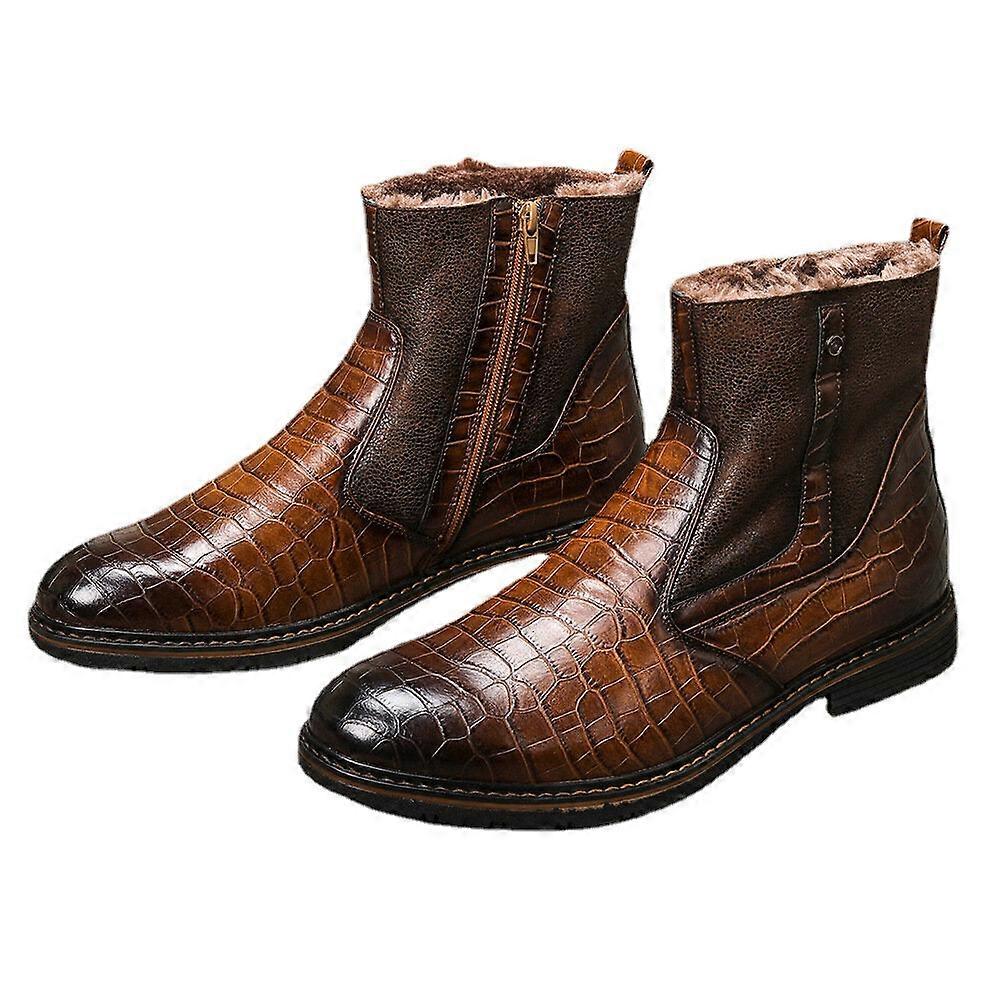 Men's Retro High-top Business Boots With Warm Plush Lining & Side Zip