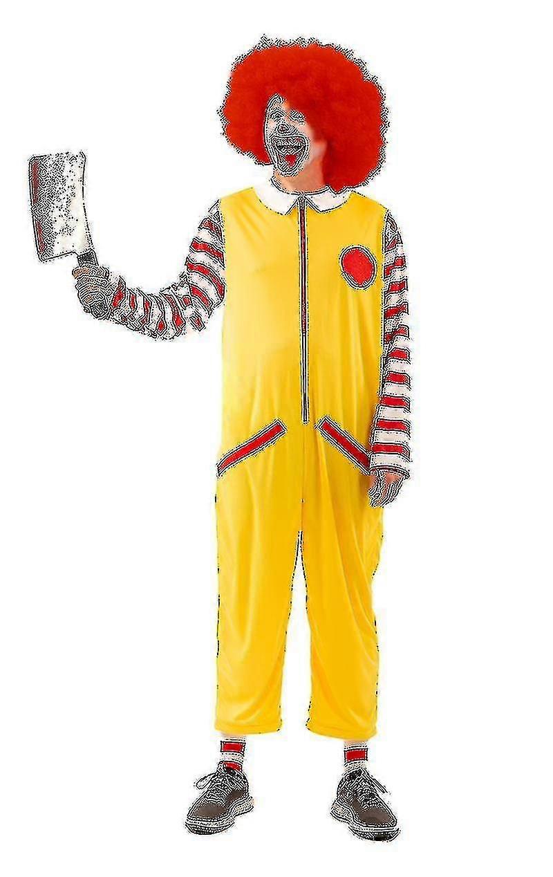 MENS FANCY DRESS COSTUME: Whether you want to trick or treat, or just hint at your favourite eats, this Fast Food Clown fancy dress costume has it covered. AVAILABLE SIZES: Standard fits up to a 42' chest and 36' waist. X-Large fits up to a 46' chest and 42' waist. COSTUME INCLUDES: Jumpsuit and socks. Excludes gloves, wig and face paint. CARE INSTRUCTIONS: 100% polyester - hand wash only, avoid bleach and dry naturally. PERFECT FOR PARTIES: Ideal for food, Halloween, stag night and group themed fancy dress parties.