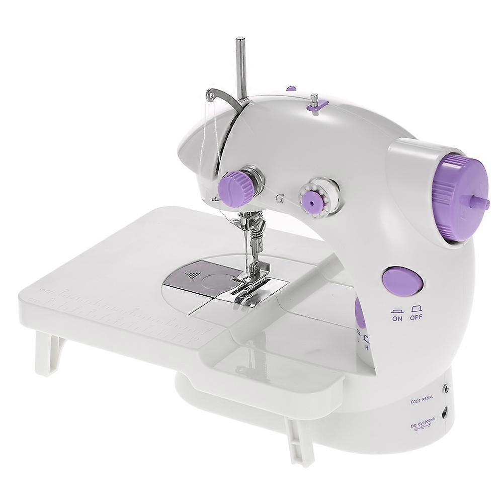 Mini Household Purple Electric Sewing Machine 2 Speed Adjustment with Light Foot Pedal Extension Table AC100-240V This mini electric sewing machine is practical which offers double thread sewing, neat and straight stitch. Come with a small sewing machine extension table which makes the sewing process more flexible and convenient. Features: Mini desktop sewing machine offers double thread sewing, neat and straight stitch. Automatic winding of bobbin thread and upper thread, easy to replace. The speed can be switchable: low or high speed. With a light, convenient to thread the needle. Come with a pedal, you can choose hand switch or foot pedal to control. The small sewing machine extension table makes the sewing process more flexible and convenient. Lightweight, compact and portable, can save more space and man power. Can be powered by power adapter or batteries(not included). Perfect for craftspeople or DIY enthusiasts e at home. Specifications: Plug Type: EU / US(optional) Power Supply: Power Adapter or Batteries(not included) Power Adapter: AC100-240V Batteries: 4 * 1.5V AA Batteries(not included) Extension Table Size(folded): 24.7 * 19.7 * 1.5cm / 9.72 * 7.76 * 0.59in Sewing Machine Size: 17.5 * 9 * 22cm / 6.89 * 3.54 * 8.66in Extension Table Weight: 199g / 7.04oz Sewing Machine Weight: 649g / 22.89oz Package Size: 25 * 15 * 21cm / 9.84 * 5.91 * 8.27in Package Weight: 1185g / 41.81oz Package List: 1 * Sewing Machine 1 * Foot Pedal 1 * Power Adapter 1 * Bag of Accessories 1 * Sewing Machine Table 1 * User Manual(English)