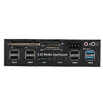 Multi-Function USB 3.0 Hub with eSATA SATA Port Internal Card Reader Front Panel for SD MS CF TF M2 MMC Memory Cards Fits 5.25 Bay