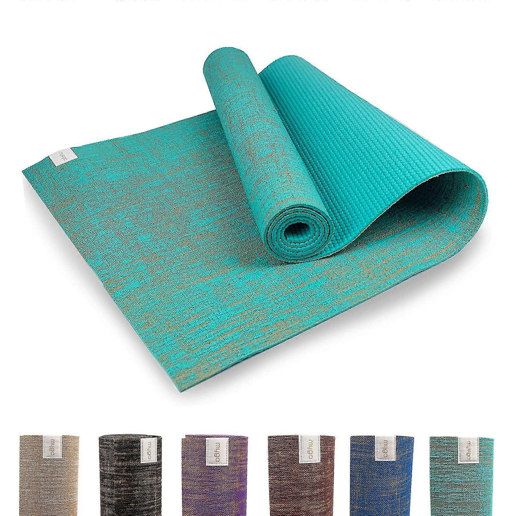 Myga Jute Yoga Mat - Non-Slip Exercise Mat for Yoga, Pilates & Fitness - Multipurpose Mat with Carry Strap for Travel - Aqua