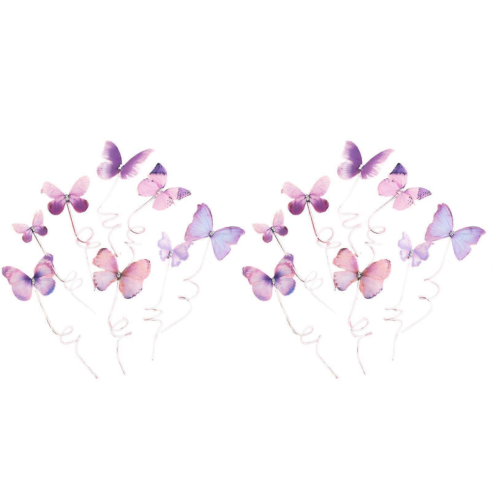 Naievear 2 Sets Cake Toppers Butterfly Design Innovative Cake Decoration Polyester Realistic Butterfly Baking Insert Cards For Party Tw