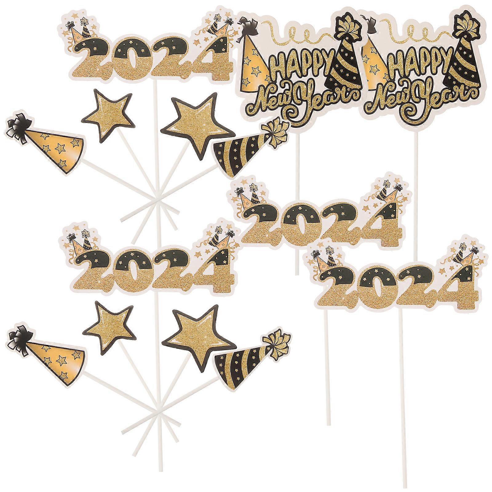 New Year Cupcake Toppers for Decoration 1Set Assorted Color Paper Picks