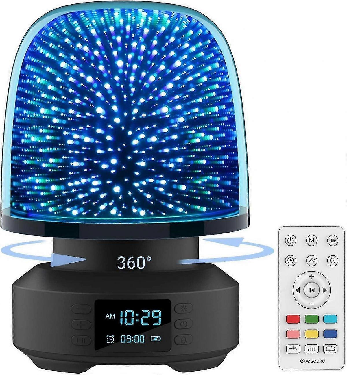 <p>Portable High Sound Quality Night Light Wireless Bluetooth SpeakerNight Light Bluetooth Speaker adopts the latest Bluetooth version 5.0, which is of stable signal connection, high transmission and low power consumption. Equipped with 360stereo sound speaker with clear sound quality and strong bass. The nightlight can be switched to Bluetooth mode\/FM Radio mode\/TF card playback mode\/AUX input mode. Built-In microphone Supports Hands-Free Calling, to Answer\/Hang-Up Calls.</p> <p>360 Rotation \u0026amp; Remote Control 3D Night LampThe mushroom-shaped table lamp adopts a 3D starry sky design, which will create a fantastic starry sky lighting effect. It can be set to 360rotation mode, which makes the lighting more dynamic and 3D effect, bringing you a shocking visual feast. Operations such as turning ON\/OFF\/Color .Changing\/Brighss or Mode adjustment\/Alarm\/Volume\/Rotation could be achieved on the remote control, it is easy and convenient to control it.</p> <p>Multifunctional Smart Bedside Lamp with HD Led ScreenCute led Lamp with Alarm clock with AM\/PM: not only time display, but also an alarm clock; Night light with timer: 10 mins \/ 30 mins Auto turn off setting; Low battery warning: Battery pattern flashes. Double click to convert 12\/24 time system; As a present gift: Night Light for Baby\/Kids\/Children\/Teens\/Boys\/Girls\/Friend\/Mom\/Women\/Adults\/ Birthday Anniversary Valentine Christmas gifts.</p> <p>Large Battery Capacity Smart Table Lamp, Excellent EnduranceNight Lamp built-in 3000mAh battery that can provide 6-10 hours of playback and lighting after each full charging (2-3H charging time). With Type-C Charging Port, it can be directly plugged into the computer\/power bank\/car charger, etc. The nightlight Bluetooth speakers with lights are cordless and portable, convenient to carry, suitable as a Camping Light\/Party Light (WORRY-FREE) Night Lights offers Lifetime .</p> <p>7 RGB Colors + 4 Modes + Dimmable Warm Light Night Light with 7 colorful lights (Warm white\/red\/green\/blue\/pink\/yellow\/ Light-blue lights) and 4 Colors changing modes(Lightings can change with the music rhythm). Dimmable Warm Light to adjust the brighss.Providing you with soft and eye-friendly light,suitable for Bedside table lamp\/Reading Lamp\/ Romantic Ambient light\/ Baby Nursery Light\/Mood Relaxing Light\/ Sleep Aid Light\/Decorative Light\/Camping Light living room bedroom.</p>