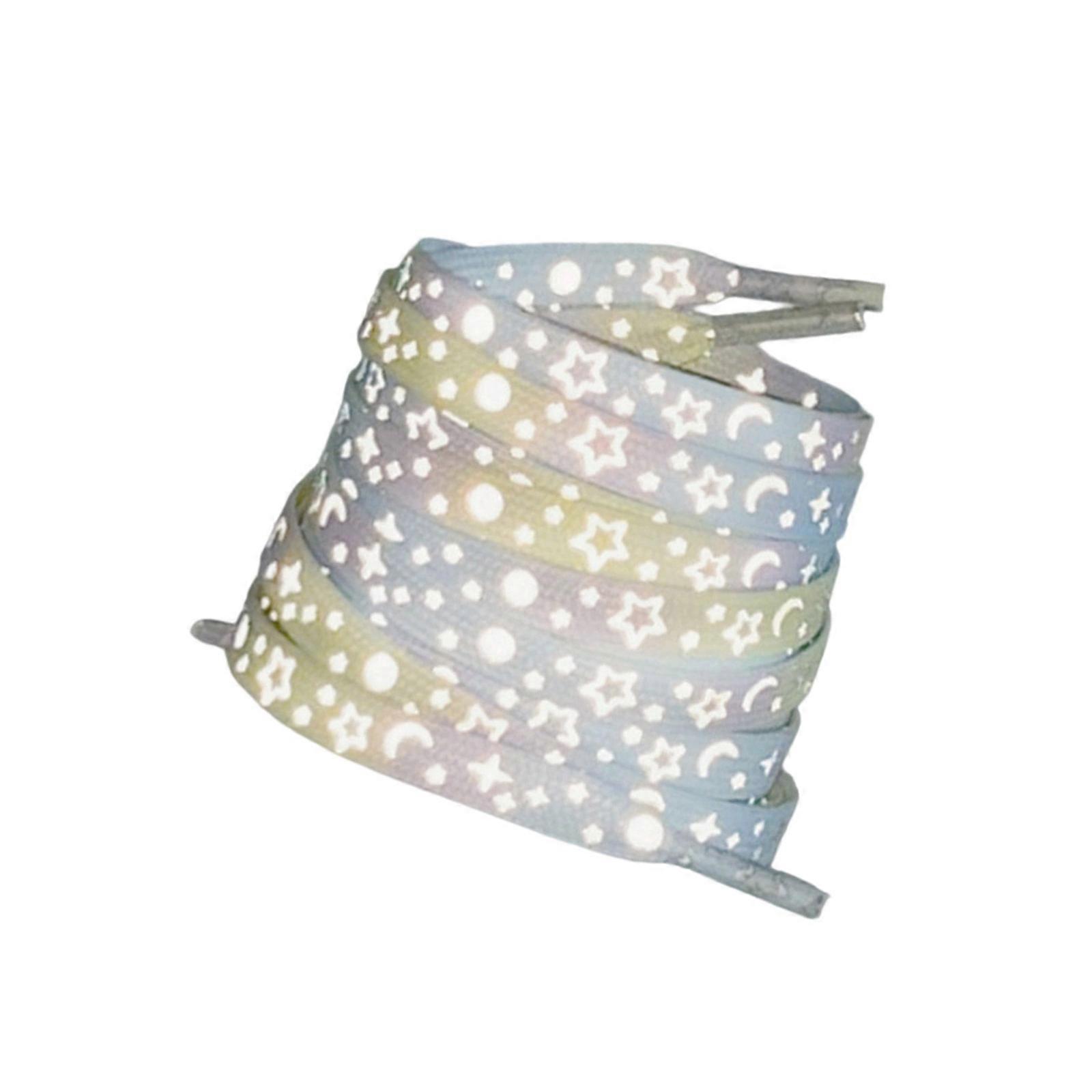 Night Safety Reflective Star Pattern Shoelaces For Running Commuting Premium Polyester Easy Install Yellow and blue refl