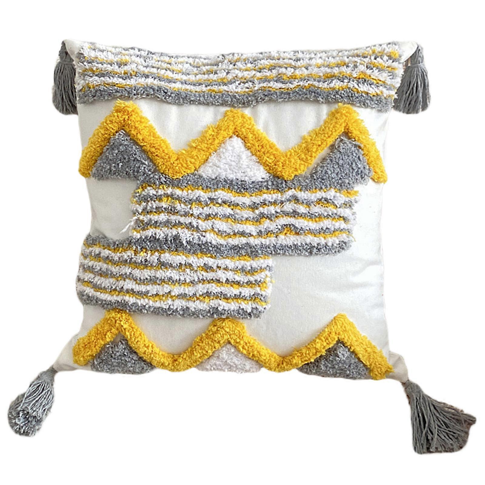 Nordic Throw Pillow for Case with Tassels Farmhouse Woven Tufted Abstract Geometric Star Pattern Decorative Cushion Cove Gray bridge