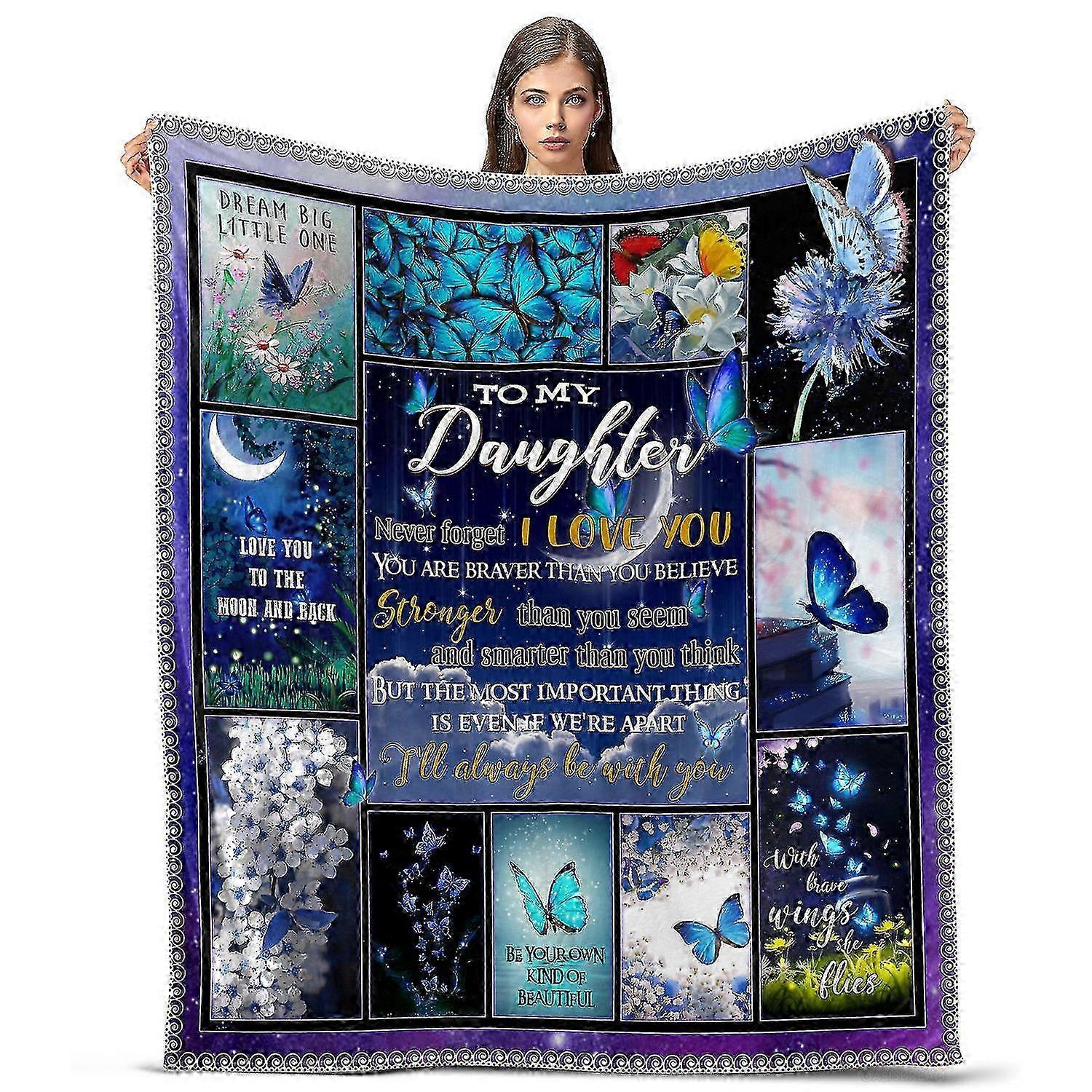 Oasisdream Great Gift Throw Blanket To My Daughter for Home, Office and Sofa, Skin Friendly with Blue Butterflies Print