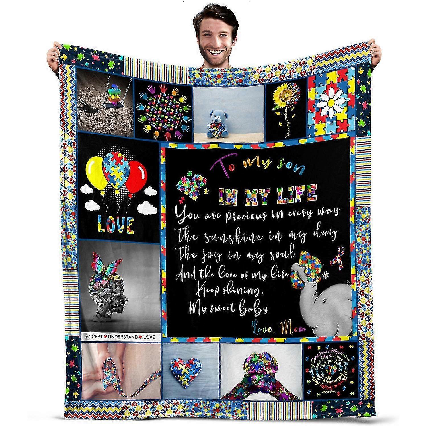 Oasisdream Throw Blanket To My Son for Sofa, Office, Outdoor Use, Birthday Gift for Him from Mom with Colorful Puzzle Print