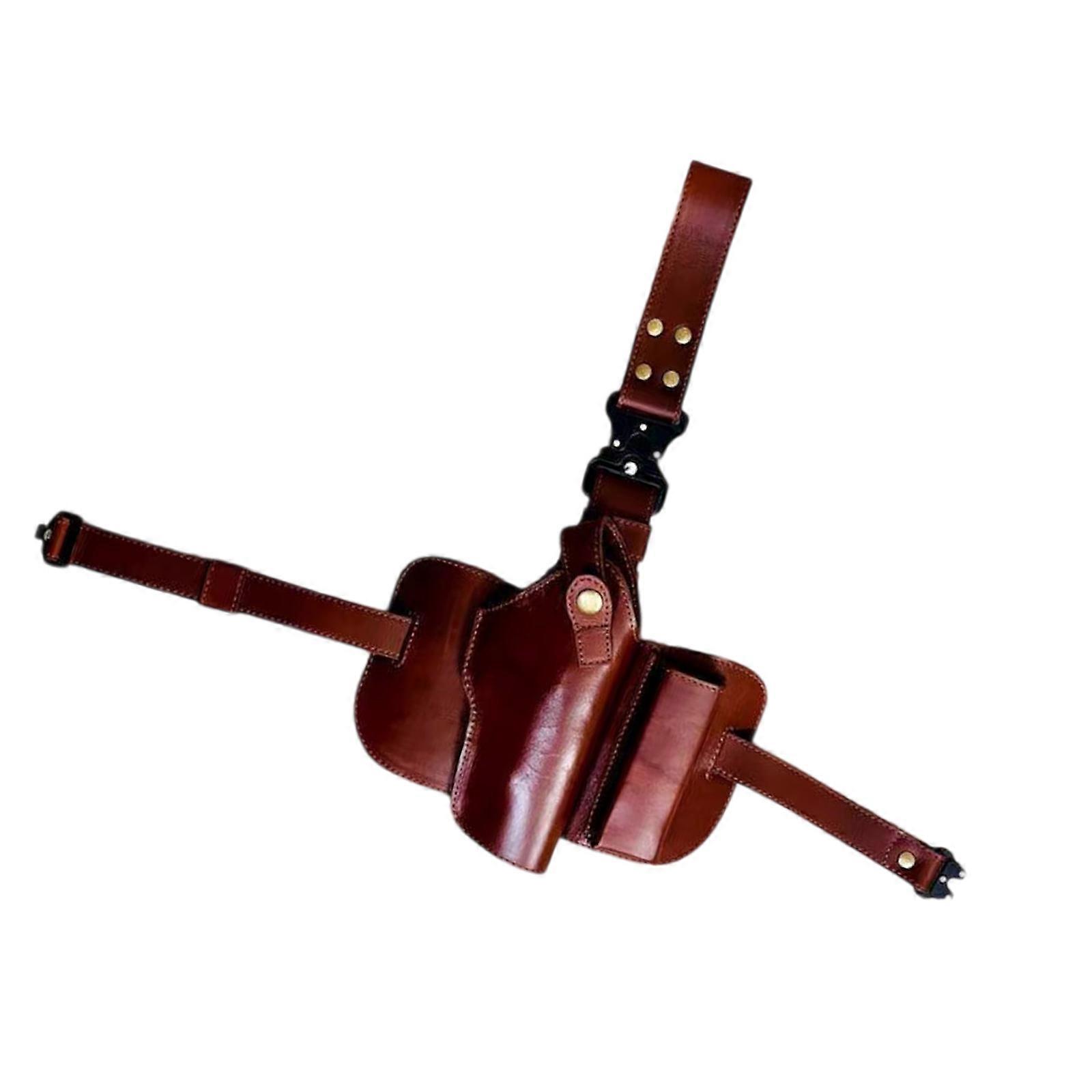 Operational PU Leather Cover Rapid Deployment Design Adjustable Strap For Enthusiast Role Play And Field Missions Red Brown