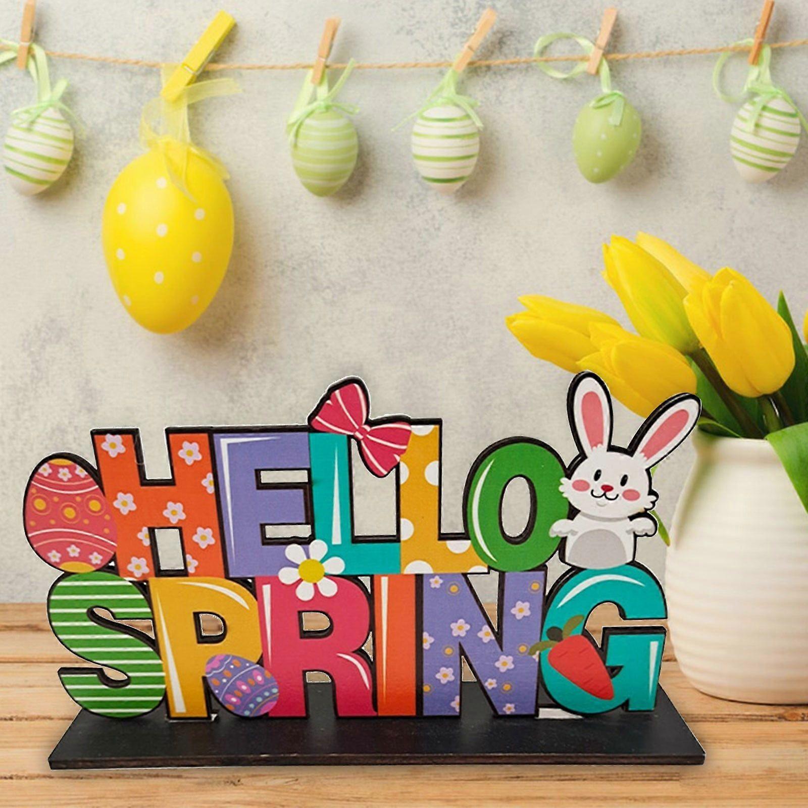 Ornaments Easter Egg Table Wooden Signs Happy Easter Block Freestanding Easter
