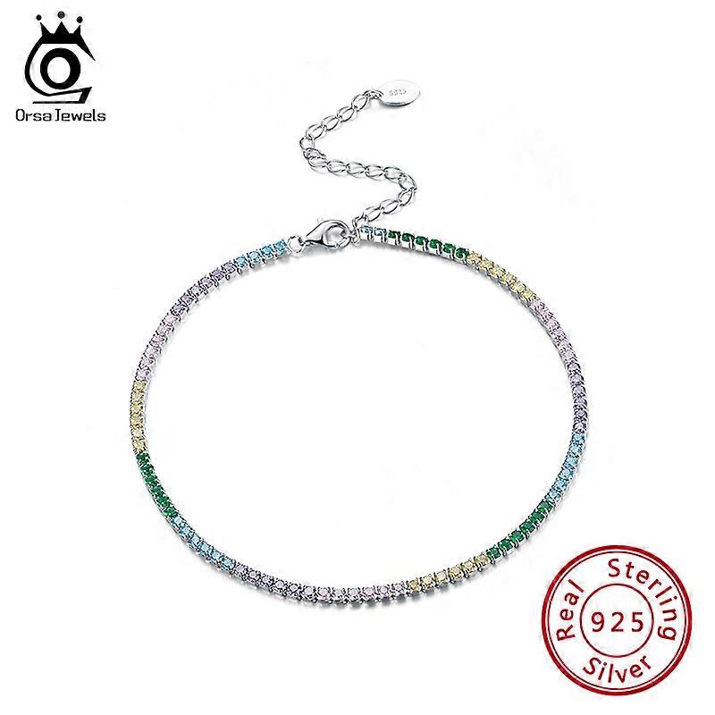 ORSA JEWELS Real 925 Silver Adjustable Tennis Anklets Bracelet with Full Paved Rhinestone for Women Barefoot Jewelry Gift SA03